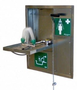 • Shower heads:  Twin PA-plastic eye/face wash heads with integral flip top dust covers.